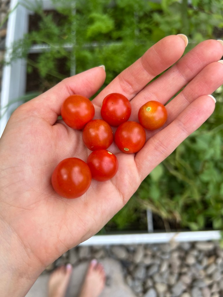 I’m really picky about my tomatoes! When I eat a salad at a restaurant, a lot of times the tomatoes on my plate are the only thing left. If they’re even slightly mushy or just sour I just don’t find them enjoyable to eat at all. But I’ve always loved a fresh garden heirloom tomato in the summer with some salt and balsamic drizzle. In recent years I’ve found these really sweet, organic grape tomatoes that I buy every week at the grocery store. These are my family’s favorite tomatoes, and I wanted to grow them in my garden. The problem was that I couldn’t buy the seeds for that exact variety of perfectly sweet tomatoes. Last year I realized I could grow plants really easily from the exact tomatoes that I love and this year I am doing the same. I grew about 8 tomato plants and had more than enough tomatoes all summer. Growing your own tomato plants from your favorite tomatoes is surprisingly simple and I can show you how to do the same!