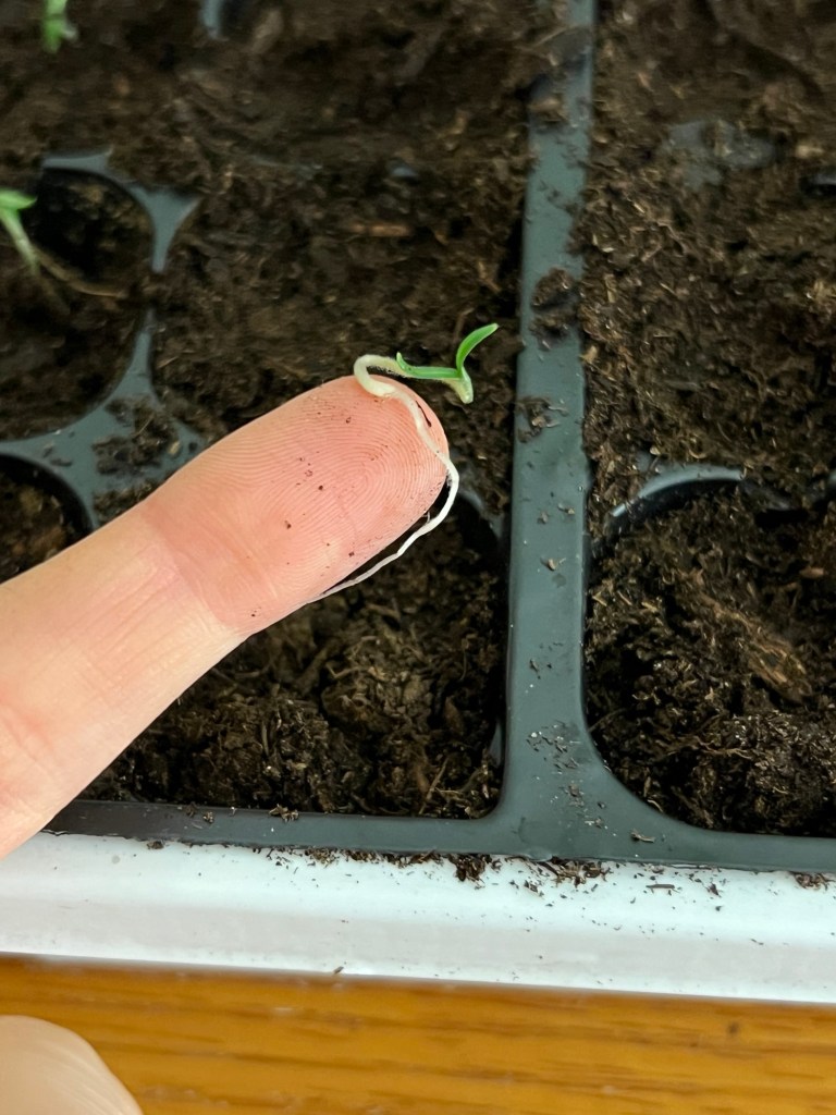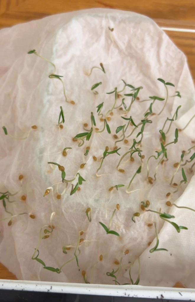 Step 4: Check for germination. It only took a day or two for me to see little sprouts. I waited about a week for them to get slightly bigger.
