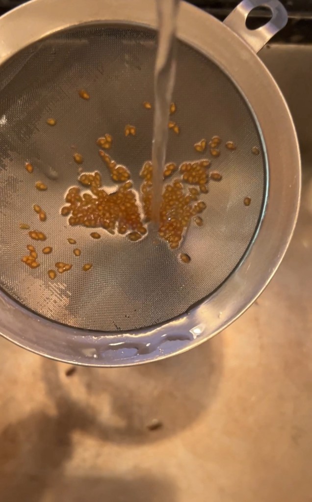 Step 2: Clean the seeds. I ran them under cool water using a strainer.