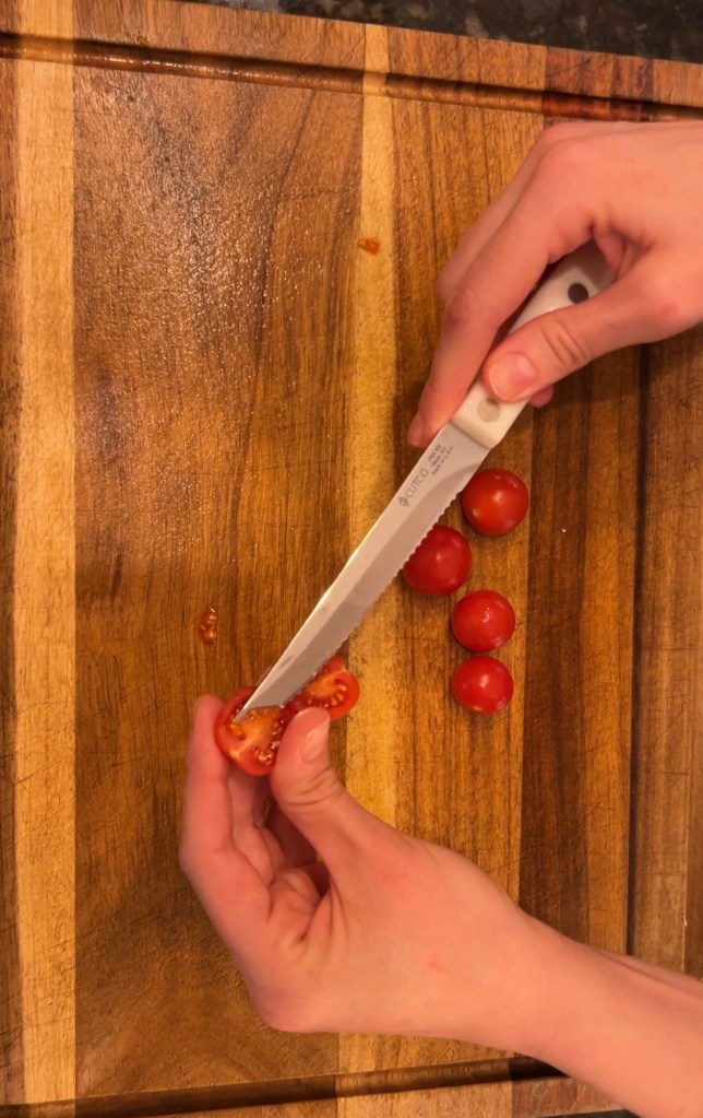 Step 1: Extract the seeds from the tomatoes. I only took seeds from 2 grape tomatoes and it was more than enough for the amount of plants I want.